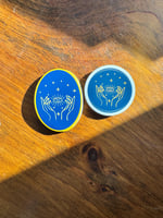 The hands cradling the night sky symbolize care, balance, and the connection between the earth and the stars. The evil eye, a well-known symbol of protection, adds an extra layer of safety and warding against negativity. It’s the perfect design for anyone seeking both cosmic beauty and spiritual protection. This sticker is not just art—it’s a symbol of strength, protection, and connection - made to safeguard your energy wherever you go!